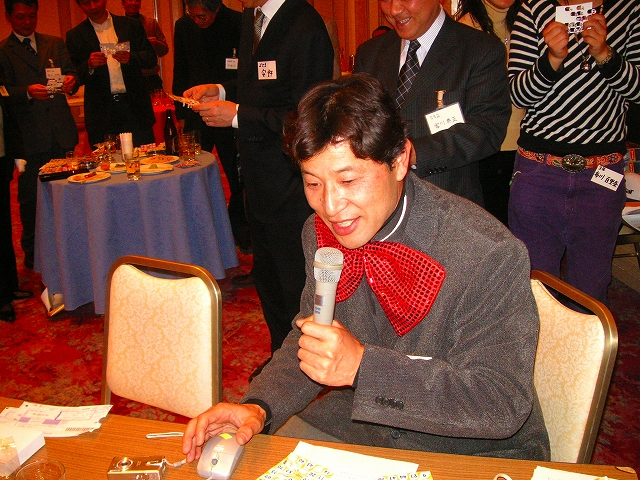 ![]() BINGO ゲームの司会で、馬鹿デカ蝶ネクタイ。似合ってないね? |